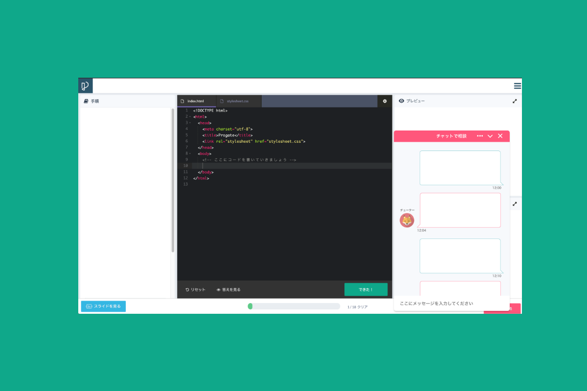 • プログラミングの最中にわからないところをリアルタイムで聞けることを想定して、チャット形式にした。